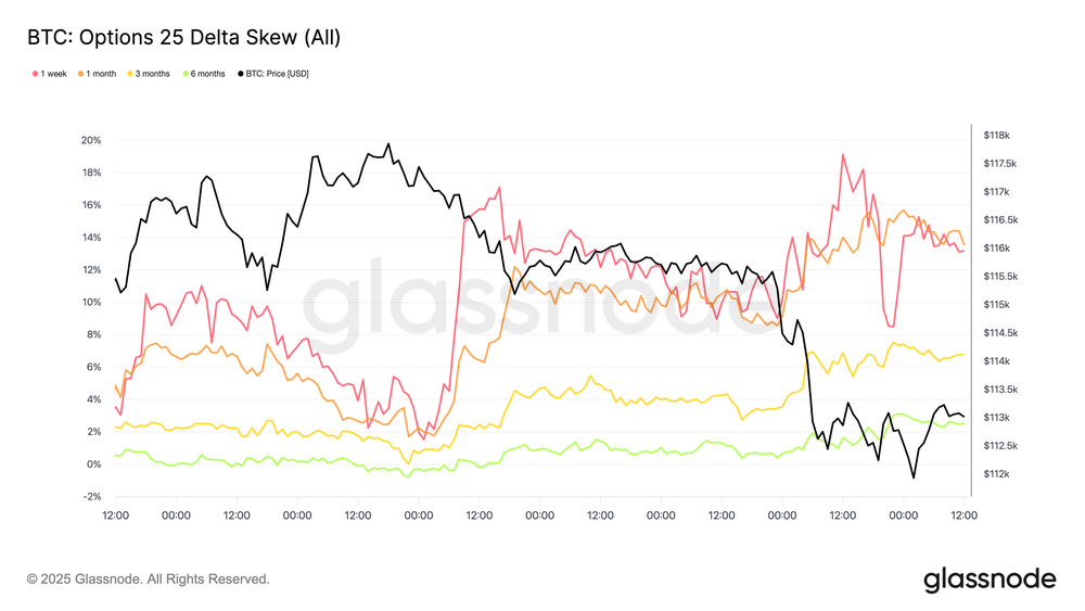 Pasar opsi mengalami repricing agresif. Implied Volatility sempat naik menjelang FOMC, namun cepat mereda setelah pengumuman, menandakan bahwa pemotongan suku bunga telah diharga . Yang lebih penting, 1-Week Skew melonjak dari ~1.5% menjadi 17%, menunjukkan permintaan agresif untuk opsi put (perlindungan dari penurunan) . Ini adalah sinyal defensif yang kuat yang kemudian terbukti dengan peristiwa likuidasi besar. Saat ini, dealer berada dalam posisi short gamma di sisi bawah, yang dapat memperbesar sell-off .
