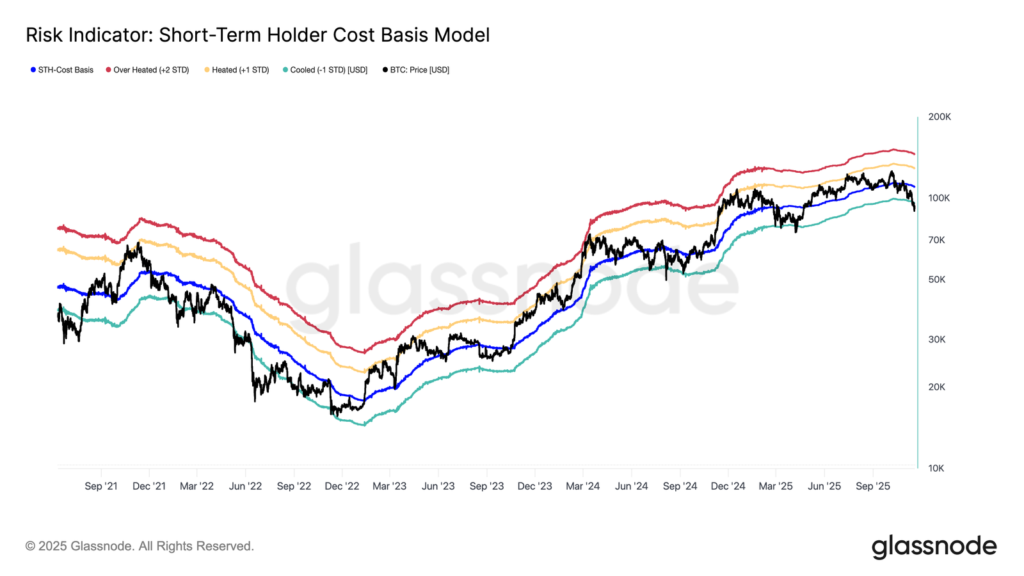 Eskalasi signifikan dari koreksi Bitcoin. Pasar tidak lagi hanya “terjebak dalam limbo”, tetapi telah mengalami breakdown struktural dengan ditembusnya level-level support on-chain kritis. Bitcoin merosot di bawah basis biaya pemegang jangka pendek (STH Cost Basis ~$109.5K) dan pita -1 STD (~$95.4K), mencapai low lokal di $89,000 dan membawa kinerja year-to-date (YTD) ke territory negatif.