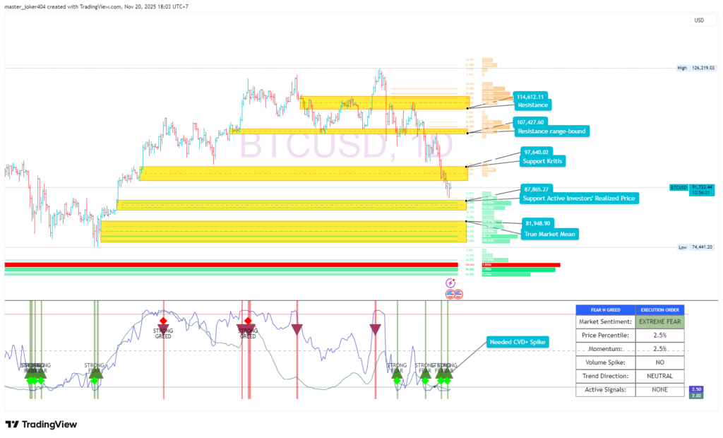 Koneksi dengan Analisis Sebelumnya: Dalam laporan “Pressure Jual LTH”, level $88.5K telah diidentifikasi sebagai support kritis berikutnya. Pasar kini sedang menguji prediksi tersebut. Keberhasilan atau kegagalan bertahan di level ini akan menentukan apakah ini tetap “fase bear ringan” (mild bear phase) atau berubah menjadi “struktur bear market penuh” seperti 2022-2023.