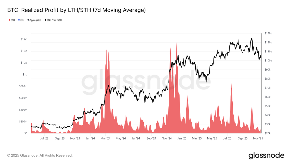 - Demand yang Masih Lemah: Realized Profit dari Pemegang Jangka Pendek, yang menjadi proksi untuk momentum investor baru, tetap lemah sejak Juni 2025. Ini mencerminkan kurangnya aliran modal baru yang segar.