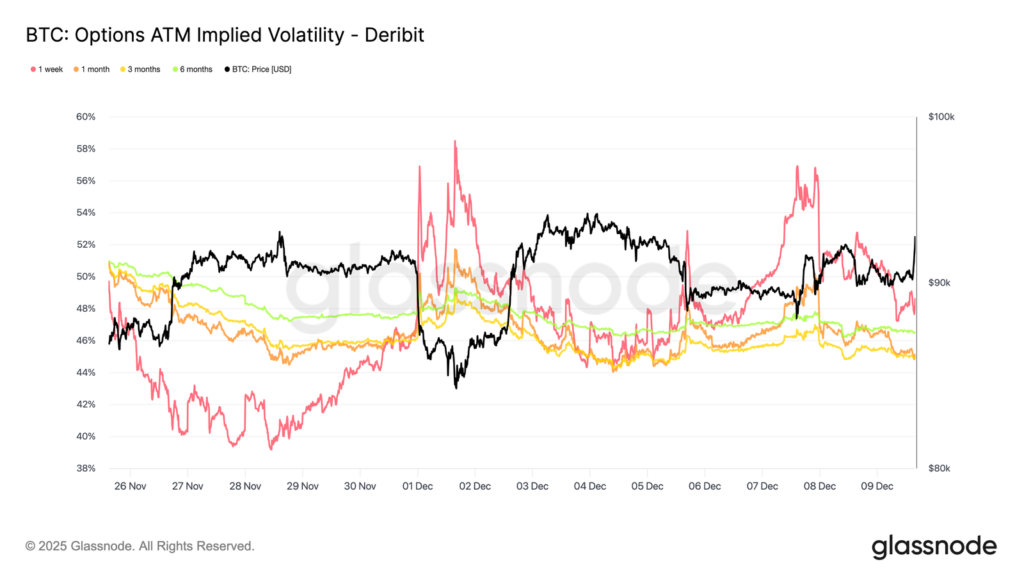 - Volatilitas Tersirat (Implied Volatility) Menyusut: Terutama untuk tenor jangka pendek, menunjukkan pasar tidak mengantisipasi gejolak besar segera setelah risiko FOMC berlalu (sesuai dengan lonjakan IV yang dicatat di laporan “Terjangkar…”).