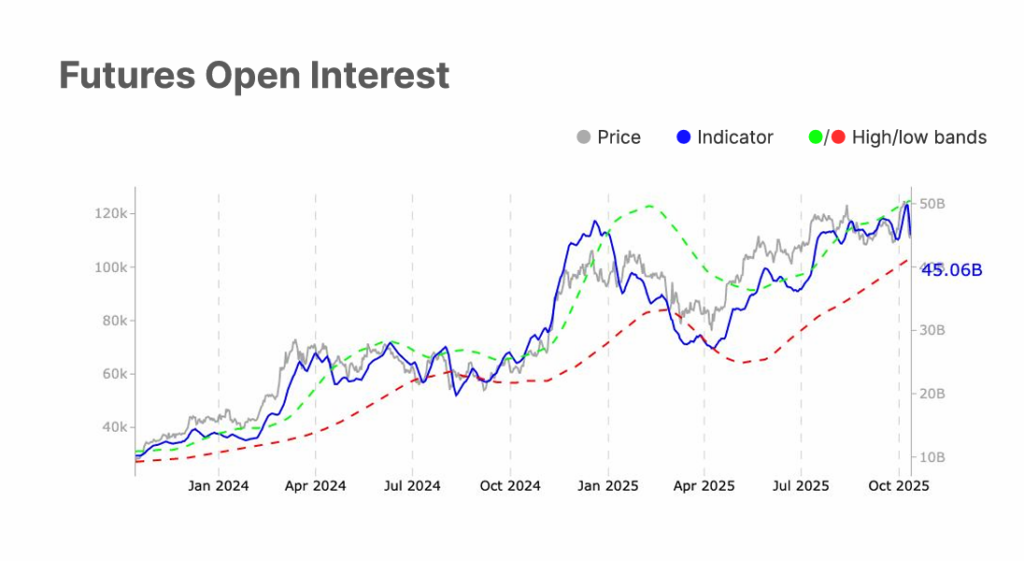 • Open Interest (OI): Turun 7.5% menjadi $45.1B, mengonfirmasi penutupan posisi leverage secara massal (baik long maupun short).