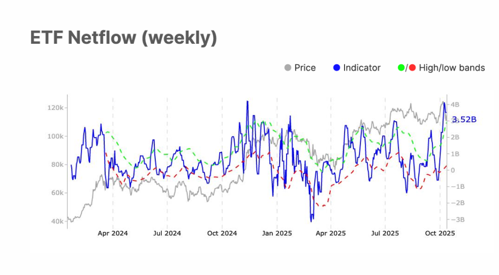 Koneksi dengan Analisis Sebelumnya: Skenario “arus masuk ETF menyerap profit-taking” yang dijelaskan di analisis 6 Oktober terjadi dengan sempurna. Modal institusional melalui ETF berhasil menjadi penyeimbang dari jualan spekulan dan trader leverage, mencegah koreksi yang lebih dalam.
